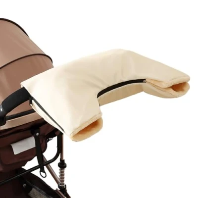 Stroller Fleece Hand Muff, Pram Windproof & Anti Freeze Pushchair Gloves, Universal Size Warm Winter Baby Gloves for More Use (Beige)