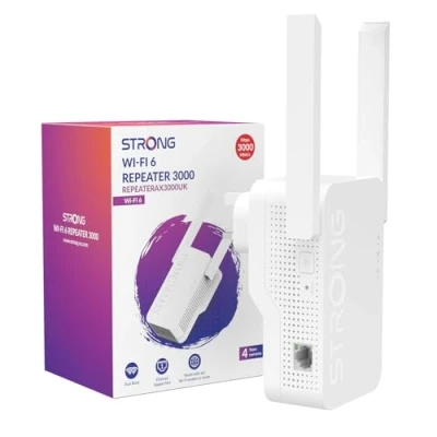 STRONG REPEATERAX3000UK AX3000 Wi Fi 6 Range Extender, Dual Band, 1 Gigabit Port & 2 External Antennas, Bridge and Access Point Mode, UK Plug