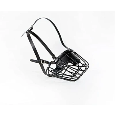 STRONG Wire Metal Muzzle Basket Dog Rottweiler,Mastiff Golden Retriever & other (R3, Black/Black Leather)
