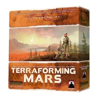 Terraforming Mars is a fun tactical board game for friends of family This is the base game. Expand your gameplay with the exciting expansions Spieleranzahl: 1-5 This strategic card-drafting board game is driven by gathering resources that aid in habitating and colonising Mars With over 200 differing Project Cards, where some can only be triggered by certain events. You have to carefully plan ahead in order to win the game. English Version | Ages 14+ | 1-5 Players | 120 Minutes Playing Time, Manufacturer: Indie Boards and Cards