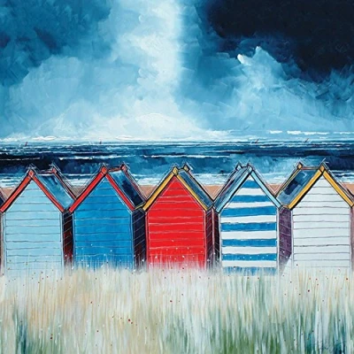 Stuart Roy Beach Huts I 40 x 40cm Canvas Prints, Polyester, Multi Colour, 40x40x3.2 cm