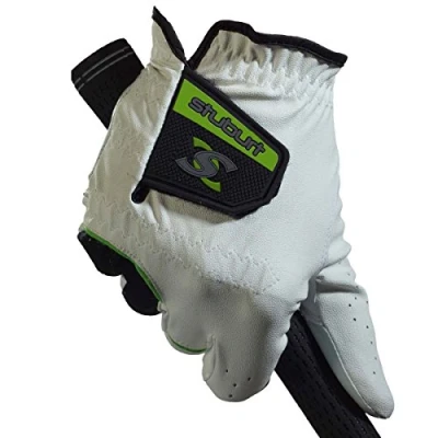 Stuburt Men's STGLV08 Urban All Weather Golf Glove with Cabretta & Synthetic Leather, White/Black, Mens Right Hand Medium/Large