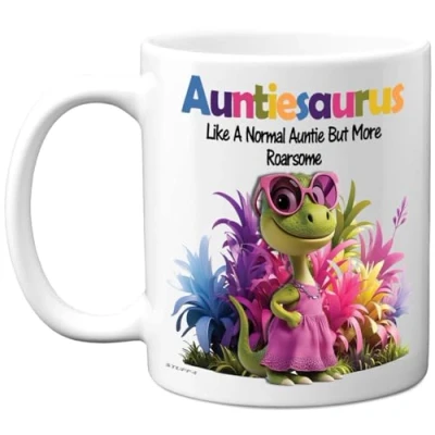 Stuff4 Auntie Gifts Roarsome Auntiesaurus Mug Happy Birthday for from Nephew Niece, Dinosaur Mother's Day Presents, 11oz Ceramic Dishwasher Safe Premium Mugs