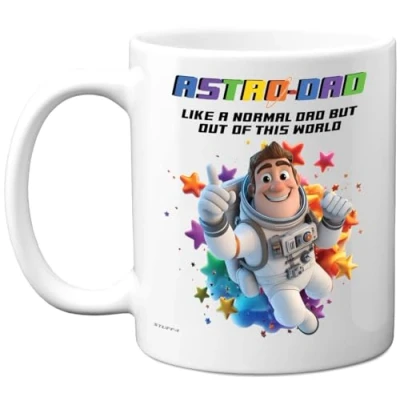 MAKE YOUR DAD SMILE ON HIS SPECIAL DAY: If you are looking for the perfect Fathers Day Gift for your Dad then look no further. This exceptional quality mug bears the design 'Astro-Dad like a normal Dad but out of this world'. Use for all occasions such as Fathers Day, Birthday, Christmas or at any point to show your appreciation. Special Birthday gifts for Parent from Son or Daughter. WHAT DO YOU GET: This novelty mug for His is made from the highest quality mugs available on the market. An 11oz ceramic gloss finished mug with a large handle for ease of use. The cheeky design is printed on both sides so no one will miss it. Incredibly funny and thoughtful gifts for men from Stuff4 Ltd. He Birthday gifts. PACKED FOR PROTECTION: Every order is packed in a drop proof double walled cardboard Mug Mailer which are lightweight and strong enough to provide total protection. So have your Father in pieces and not the fun mug.Fathers Day gifts from Son, Parent Birthday gift, Father Birthday gifts, Fathers Day gifts, Dad mugs. MADE AND QUALITY CHECKED IN THE UK: We manufacture all our product right here in the UK so you can be sure of a fast turnaround and a product that is expertly made - for Dad Birthday gifts. Great Dad Fathers Day gifts from Son or Daughter. Parent Birthday present from Son, Father gift Dad, Fathers Day present for Parent, Fathers Birthday presents, Fathers Day gifts from Daughter, funny Fathers Day gift. 11oz DISHWASHER AND MICROWAVE SAFE MUGS: Made from premium ceramic our 11oz heavyweight mugs are manufactured with a dishwasher safe premium coating. This means that the colours of your image will not fade from even after multiple cycles (up to 800) through a dishwasher and they are also microwave safe.happy Birthday gift Dad, Parent Fathers Day gifts.