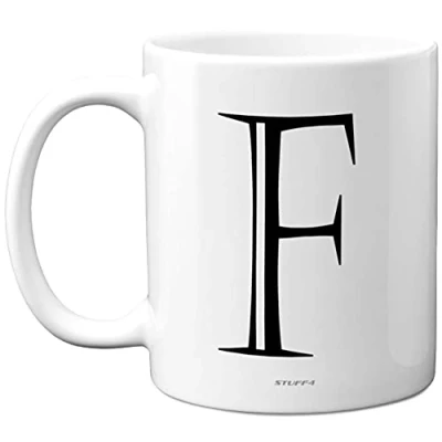 CUSTOMISED MUG - LETTER MONOGRAM FOR ALL CELEBRATIONS: If you are looking for novelty mugs for her or him then look no further. This exceptional quality mug bears the Initial - F - used as the first letter of their name. Not just for a birthday this premium quality mug could be used at any time of the year as best friend gift. Personalised mugs for men and women. WHAT DO YOU GET: This letter mug is made from the highest quality mugs available on the UK market. An 11oz ceramic gloss finished mug with a large handle for ease of use. The cheeky design is printed on both sides so no one will miss it. Incredibly well made custom mug and gifts for women and men from Stuff4 Ltd NO BREAKAGES: Every order is packed in a drop proof cardboard gift box Mug Mailer which are lightweight and strong enough to provide total protection. So have the birthday boy or girl in pieces and not the novelty mugs. MADE AND QUALITY CHECKED IN THE UK: We manufacture all our product right her in the UK so you can be sure of a fast turnaround and a product that is expertly made - for her birthday gifts and his. 11oz DISHWASHER AND MICROWAVE SAFE MUGS: Made from premium ceramic our 11oz heavyweight mugs are manufactured with a dishwasher safe premium coating. This means that the colours of your image will not fade from even after multiple cycles (up to 800) through a dishwasher. They are also microwave safe.