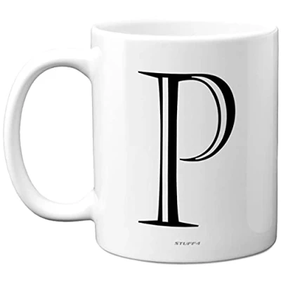 Stuff4 Personalised Alphabet Initial Mug Letter P Mug, Gifts for Him Her, Fathers Day, Mothers Birthday Gift, 11oz Ceramic Dishwasher Safe Mugs, Anniversary, Valentines, Christmas, Retirement