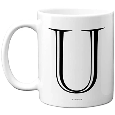 CUSTOMISED MUG - LETTER MONOGRAM FOR ALL CELEBRATIONS: If you are looking for novelty mugs for her or him then look no further. This exceptional quality mug bears the Initial - U - used as the first letter of their name. Not just for a birthday this premium quality mug could be used at any time of the year as best friend gift. Personalised mugs for men and women. WHAT DO YOU GET: This letter mug is made from the highest quality mugs available on the UK market. An 11oz ceramic gloss finished mug with a large handle for ease of use. The cheeky design is printed on both sides so no one will miss it. Incredibly well made custom mug and gifts for women and men from Stuff4 Ltd NO BREAKAGES: Every order is packed in a drop proof cardboard gift box Mug Mailer which are lightweight and strong enough to provide total protection. So have the birthday boy or girl in pieces and not the novelty mugs. MADE AND QUALITY CHECKED IN THE UK: We manufacture all our product right her in the UK so you can be sure of a fast turnaround and a product that is expertly made - for her birthday gifts and his. 11oz DISHWASHER AND MICROWAVE SAFE MUGS: Made from premium ceramic our 11oz heavyweight mugs are manufactured with a dishwasher safe premium coating. This means that the colours of your image will not fade from even after multiple cycles (up to 800) through a dishwasher. They are also microwave safe.