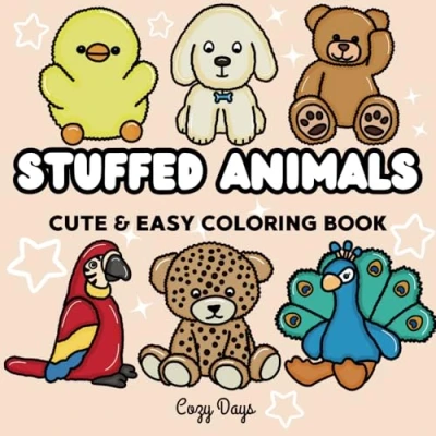 Stuffed Animals: Coloring Book for Adults and Kids, 55 Cute & Easy Designs Relaxation Featuring Super Cozy Animal Characters: (Bold Stress Relief)