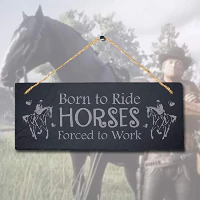 Stukk Born to Ride Horses Laser Hanging Shed Pet Animal Sign, Natural Engraved Slate Stone Plaque, 30x12cm