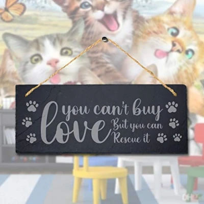 Stukk Cats Dogs Pet Funny Laser Hanging Kitten Pup Puppy Therapy Sign (You Can Not Buy Love), Natural Engraved Slate Stone Plaque, 30x12cm (Large)