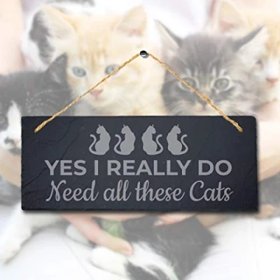 Stukk Dogs Pet Funny Laser Hanging Kitten Pup Puppy Love Therapy Sign (I Really Do Need All These Cats), Natural Engraved Slate Stone Plaque, 30x12cm (Large)