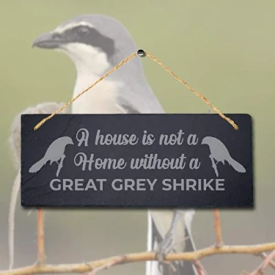 Stukk Home Without Bird Budgerigar Hanging Red Billed Leiothrix Warbling White Eye Sign (Grey Shrike), Natural Engraved Slate Stone Plaque, 30x12cm (Large)