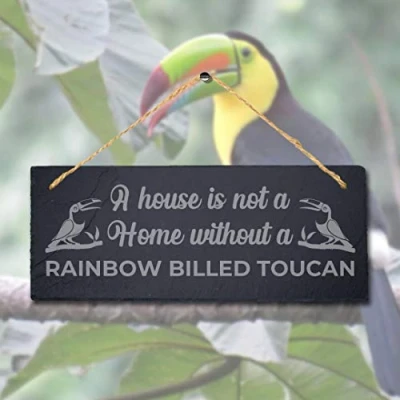 Stukk Home Without Bird Coconut Lorikeet Grey Parrot Garden Laser Hanging Sign (Rainbow Billed Toucan), Natural Engraved Slate Stone Plaque, 30x12cm (Large)
