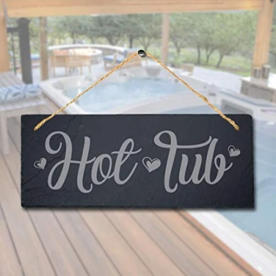 Stukk Hot Tub Love Laser Hanging Pool Decor Sign, Natural Engraved Slate Stone Plaque, 30x12cm