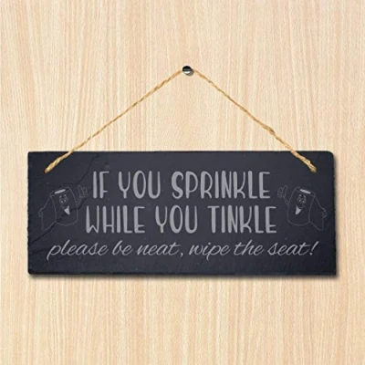 Stukk If You Sprinkle While Tinkle Laser Hanging Humorous Sign, Natural Engraved Slate Stone Plaque, 30x12cm (Large)