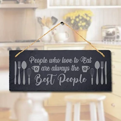 Stukk People Who Love to Eat Laser Hanging Kitchen Home Sign, Natural Engraved Slate Stone Plaque, 30x12cm