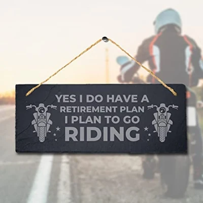 Stukk Remember Best Things in Life Happiness Motorbikes Travel Bikers Laser Hanging Garage Sign (Retirement Plans Riding), Natural Engraved Slate Stone Plaque, 30x12cm (Large)