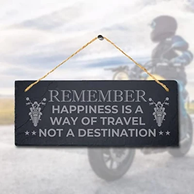 Stukk Remember Best Things in Life Motorbikes Riding Bikers Retirement Plans Laser Hanging Garage Sign (Happiness is Travel), Natural Engraved Slate Stone Plaque, 30x12cm (Large)