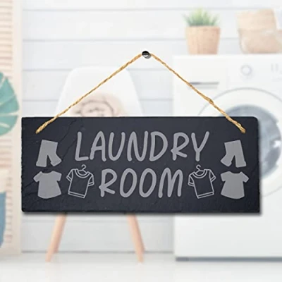 Stukk Room Laser Hanging Laundry Hub Home Sign, Natural Engraved Slate Stone Plaque, 30x12cm