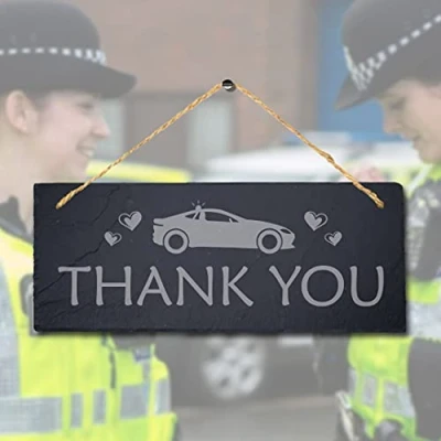 Stukk Thank Hanging Lockdown Cop Police Guard Sign, Natural Engraved Slate Stone Plaque, 30x12cm (Large)