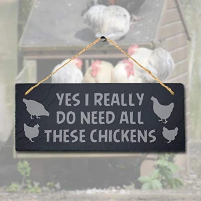 Stukk Warning Coop Protected by Hot Attack Hanging Chick Shed Sign (Need These Chicken), Natural Engraved Slate Stone Plaque, 30x12cm (Large)