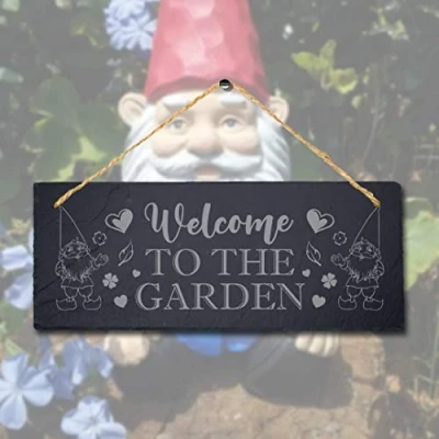 Stukk Welcome to The Garden Hanging Christmas Celebration Sign, Natural Engraved Slate Stone Plaque, 30x12cm