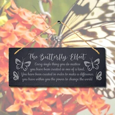 Stukk Welcome Yard Growing Finding Hope Delight Beauty Hanging Garden Sign (The Butterfly Effect), Natural Engraved Slate Stone Plaque, 30x12cm (Large)