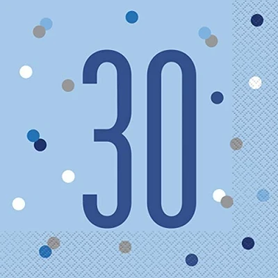 Stunning 30th Glitz Blue & Silver Luncheon Napkins (16cm) Dazzling Addition for Parties, Events Elegant Table Decor 16ct