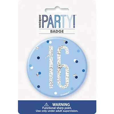 STUNNING DESIGN: Make the birthday girl stand out with our eye-catching blue and silver 16th birthday badge, perfect for adding a touch of sparkle to her special day. HIGH-QUALITY MATERIAL: Crafted with durable and premium materials, this chic badge is designed to last, allowing her to cherish this keepsake for years to come. IDEAL FOR CHIC CELEBRATIONS: Complement any chic party theme by incorporating this fashionable accessory into your celebrations, creating a cohesive and elegant ambiance that is sure to impress guests and turn her birthday bash into a night to remember. EASY TO USE: With a secure pin backing, this stylish 16th birthday badge is a breeze to attach to any outfit or accessory, ensuring the celebrant looks her best all night long. PERFECT KEEPSAKE GIFT: Celebrate her sweet sixteen in style and make unforgettable memories with this chic and trendy badge - a truly thoughtful, unique, and memorable present that she can treasure forever., Manufacturer: Unique