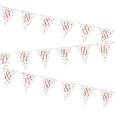 Stunning Rose Gold 80th Birthday Glitz Prismatic Flag Banner (274cm) Perfect Celebration Decor for Birthday, Anniversary, & More 1 Pc