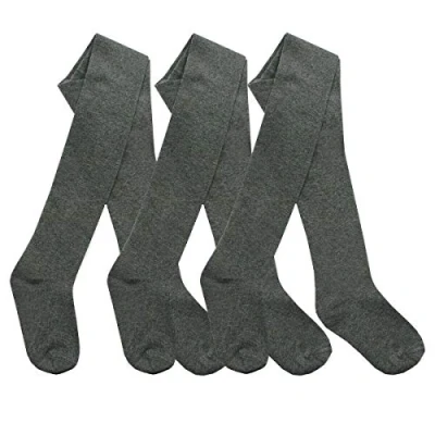 Style It Up Girls Plain Tights Back to School Warm Cotton Rich Soft Children 2 13 Years Multipack (3 Pack, Grey, Years)