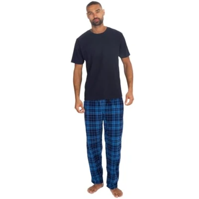 Style It Up Mens Short Sleeve Pyjama Set Cotton Top Brushed Fleece Bottoms PJ Loungewear/Nightwear (NAVY BLUE, XL)