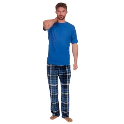 Style It Up Mens Short Sleeve Pyjama Set Cotton Top Brushed Fleece Bottoms PJ Loungewear/Nightwear (ROYAL BLUE CHECK, XL)