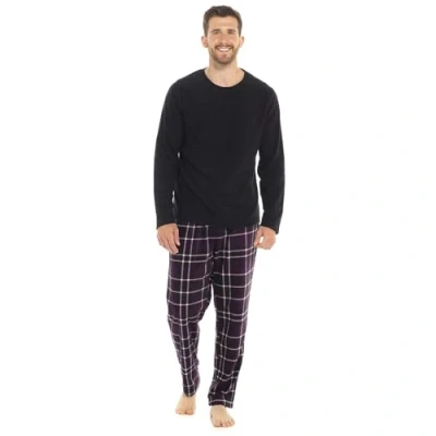 Style It Up Mens Warm Cosy Check Fleece Loungewear Winter PJ Super Soft Pyjama Luxury Set (Black, L)