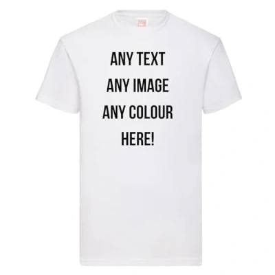 PERSONALISED T-SHIRT: This T-Shirt offers customisable options, allowing you to personalise it with either PRINTED TEXT or IMAGE DESIGNS according to your preference. Whether you opt for a bold statement with printed text, express your creativity with vivid images, or add a touch of elegance with finely embroidered details, the choice is yours. 100% SOFT SPUN COTTON: This Customised T-Shirt is expertly crafted using a carefully selected of premium material, consisting of 100% Soft Spun cotton. Ensuring an exceptionally comfortable fit and ideal for printing purposes. Crafted for a regular fit, it provides comfort without sacrificing style. With short sleeves, it offers versatility for various occasions. SIZES FROM 6 MONTHS - 4XL: Whether you prefer classic hues such as black or white or vibrant summer shades, our collection offers a diverse array of colours to choose from. With sizes ranging from 6 months to 4XL, there's something for everyone. IDEAL GIFT FOR BABIES TO ADULTS: Suitable for inclusion in a baby gift hamper or basket, making it a thoughtful addition to a baby shower gift. Additionally can be gifted for both him and her even for hen and stag parties. Whether it's Matching couples gifts, Christmas, Birthdays, Valentine's Day, or Fathers/Mother's Day Moreover, it is a delightful choice for commemorating special occasions such as christenings or Christmas, ensuring it stands out as a cherished present. EASY CARE: This has the convenience of being fully machine washable at 30°C, ensuring easy maintenance. They are exceptionally soft, durable, designed to withstand regular use, and made to last, guaranteeing long-lasting enjoyment.