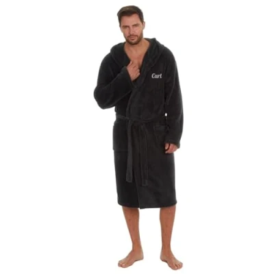 Style It Up Personalised Mens Coral Fleece Dressing Gown Warm Hooded Lounge Robe M 5XL (Charcoal, XL)