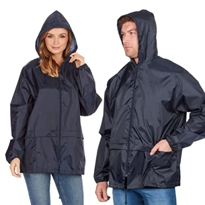 Style It Up Unisex Mens Ladies Water Resistant Plain Raincoat Kagools Jacket Hooded Cagoule (Navy, 4XL)
