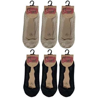 Style It Up Womens Ladies Lace Footsies Thin Socks Invisible Shoe Liners Skin Nude Black