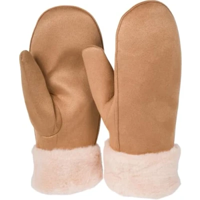 styleBREAKER 09010048 Women's Winter Mittens Suede Look with Soft Faux Fur Waistband Warm Mittens, camel, One size