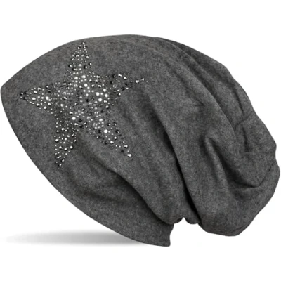 styleBREAKER Beanie hat with Rhinestone Rivets Star and Silver Anthracite Coloured Decorative Stones, Slouchy Long Beanie, Unisex 04024087, Colour:Mottled Dark Grey