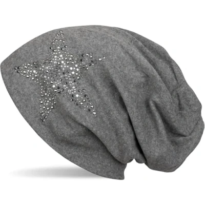 styleBREAKER Beanie hat with Rhinestone Rivets Star and Silver Anthracite Coloured Decorative Stones, Slouchy Long Beanie, Unisex 04024087, Colour:Mottled Grey