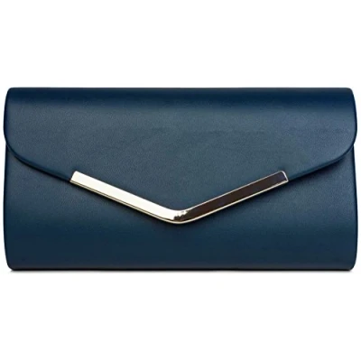 styleBREAKER clutch evening bag in the envelope design with decorative strip of metal and removable chain for hanging, ladies 02012131, Colour:Dark Blue