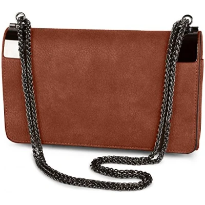 styleBREAKER Clutch, Evening Bag with Metal Clasp and Plain Coil Chain, Vintage Design, Ladies 02012046, Colour:Red Brown