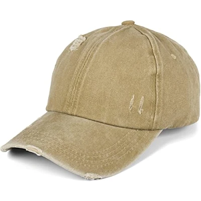 Unicoloured Ponytail Baseball Cap in trendy washed destroyed used look with curved visor and single cracks and fringes. For the destroyed used look the outer fabric of the cap is provided with tears and fringes Cross ties at the back of the head allow you to wear your hair in a high ponytail or messy bun Size: One size fits all for adults - size adjustment by Hook-and-loop fastener at the back of the head Circumference min approx. 55 cm - Can be worn loosely up to a head circumference of approx. 59 cm - Umbrella length approx. 7 cm