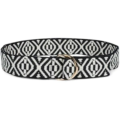 styleBREAKER Ladies Fabric Belt with Aztec Ornament Pattern and D Rings, One Size/Onesize, Waist 03010113, Colour:Black White