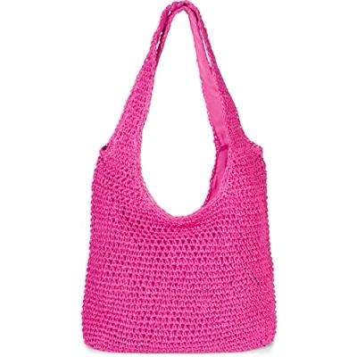 styleBREAKER Ladies Paper Straw Bag with Long Wide Handles, Beach Bag, Shoulder Braided 02012397, Colour:Pink