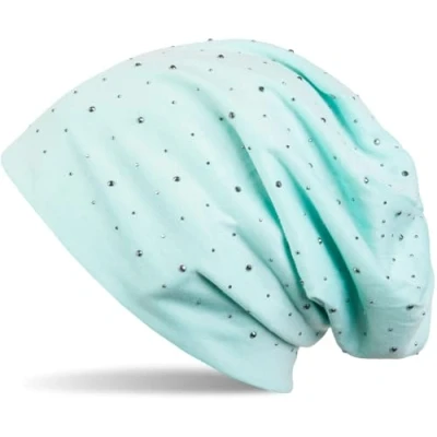 styleBREAKER Noble Beanie hat with Rhinestone Rivet Application, Unisex 04024037, Colour:Mint