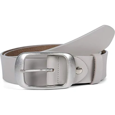 styleBREAKER plain real leather belt with a shiny finish and large buckle, adjustable, unisex 03010104, Colour:Light Grey, size:80cm