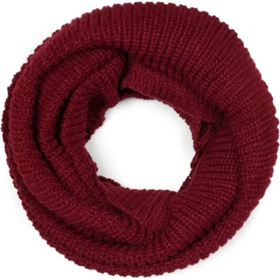 styleBREAKER Unisex Fine Knit Scarf, plain Loop Infinity Rib Winter Knitted Scarf 01018112, Colour:Dark Red
