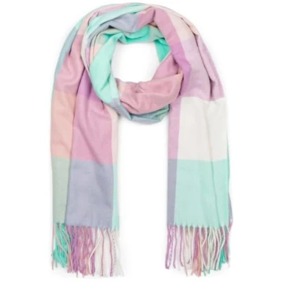 styleBREAKER Unisex soft plaid scarf with long fringes, plaid, winter, stole 01017110, Colour:Mint Lilac Beige